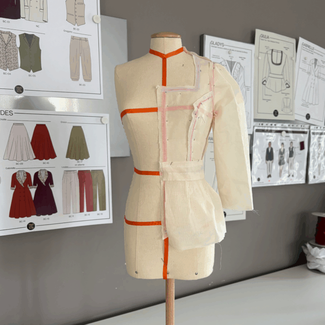 Le bureau d’études transforme l’idée en vêtement. Patronage, gradation, prototypage : chaque étape valide confort, élégance et fonctionnalité. Cette expertise technique permet d’assurer la cohérence des lignes, d’adapter les modèles à toutes les morphologies et de garantir un rendu fidèle aux exigences de votre maison.